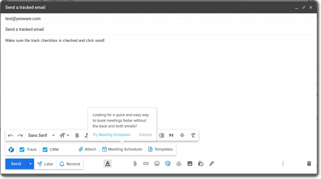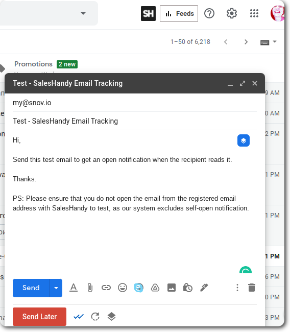 SalesHandy – это программа отслеживания электронной почты, которая интуитивно понятна и проста в использовании. Сначала вам нужно установить расширение, согласиться с условиями использования, а затем вы можете написать свое первое тестовое письмо.