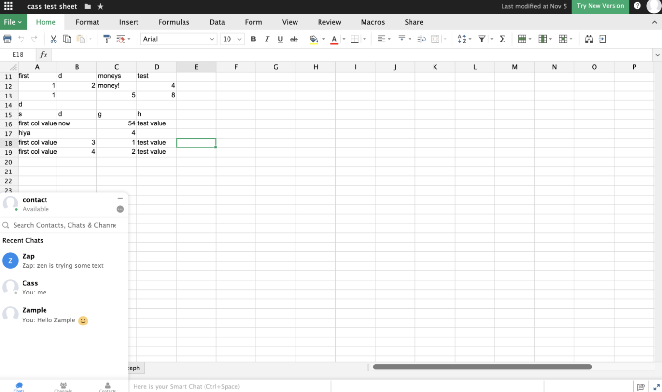 Вы можете записывать макросы и использовать VBA, как и в Excel. Чтобы создать свою собственную форму с помощью Zoho Forms, перейдите в раздел “Форма > Создать”. Затем вы можете создать форму с помощью перетаскивания элементов, опубликовать ее в Интернете и использовать ответы для заполнения электронной таблицы. Как и другие продукты Zoho, Sheet включает совместную работу в режиме реального времени через меню “Поделиться”. Нажмите на поле чата в нижней части окна, чтобы обсудить текущую задачу или оставить комментарии в стиле Google. Управление разрешениями на совместную работу очень простое, и вы можете опубликовать всю таблицу или определенные диапазоны в Интернете в меню Share > Publish. Цена Zoho Sheet: Бесплатный тарифный план (пять пользователей, 5 ГБ на пользователя); доступны бизнес-подписки.