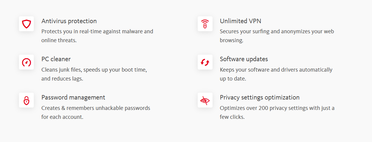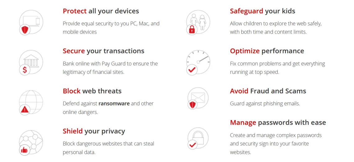 - Защита “все в одном” – от защиты от вредоносных программ до чистки компьютера