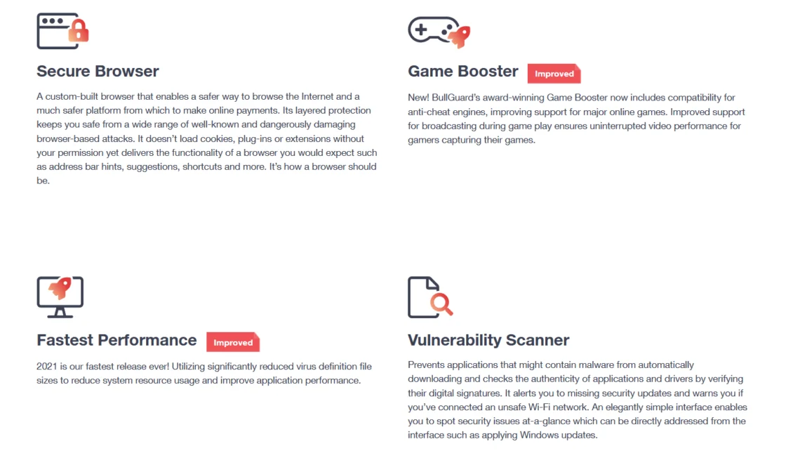 BullGuard Internet Security обладает большинством современных функций. Однако его отличает то, что он ориентирован на производительность и игры. Поэтому, если вы любите соревновательные многопользовательские игры, BullGuard Internet Security может стать вашим идеальным антивирусным компаньоном.