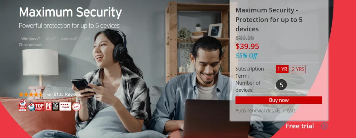 - 1 год $29.99-3 устройства $33.99-5 устройств