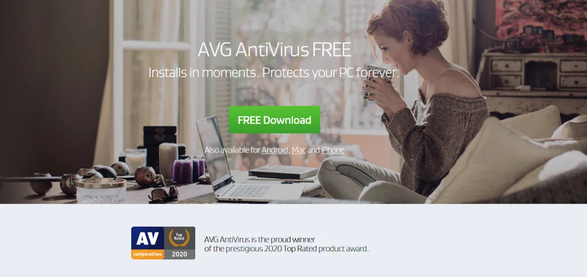 Если вы не хотите платить за антивирус, то антивирусный пакет AVG – это лучшее бесплатное антивирусное программное обеспечение, которое вы можете установить на свой компьютер. AVG обещает и предоставляет самые современные антивирусные сканеры с автоматическим регулярным обновлением. На самом деле, в 2020 году этот антивирус занял первое место в рейтинге. AVG Antivirus Free имеет все важные функции, которыми должен обладать антивирус, такие как защита от шпионских программ и программ-вымогателей, защита от небезопасных ссылок и оптимизация производительности ПК.
