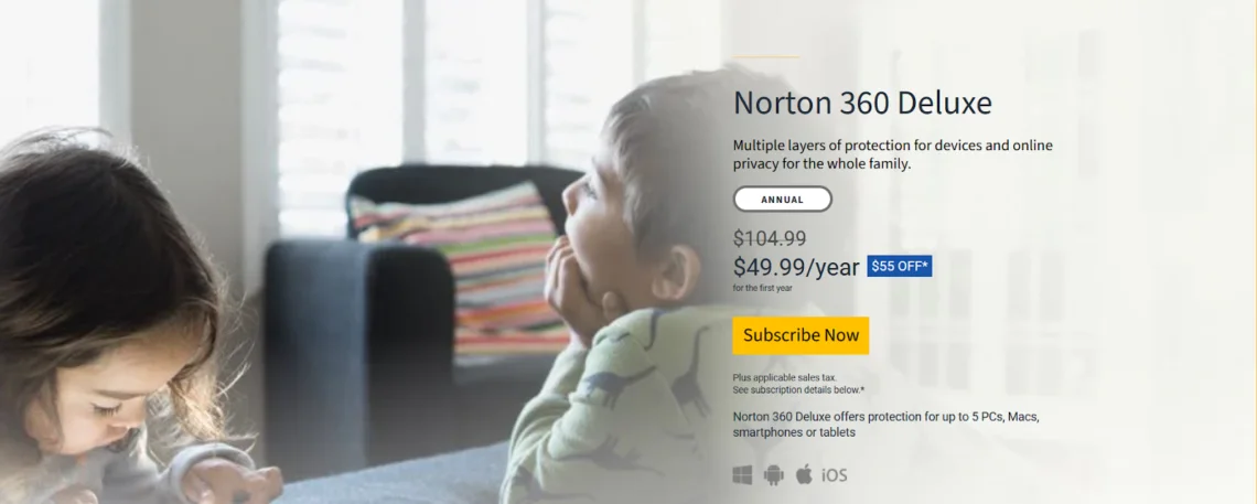 Norton 360 Deluxe обойдется вам в $59,99 за первый год. После этого цена составит $104,99. Как следует из названия, Norton 360 Deluxe обеспечивает 360-градусную защиту от угроз безопасности в Интернете. Вы и ваши дети получите надлежащую защиту личности.