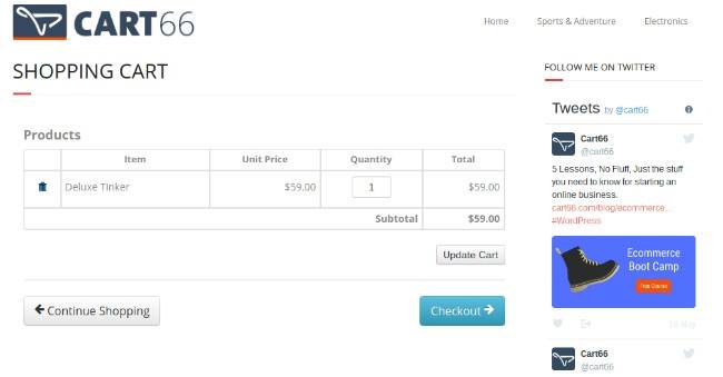 - Cart66 Cloud – От приема пожертвований до публикации цифровых журналов, Cart66 предлагает несколько функций, которые делают его довольно привлекательным. Однако я не могу пройти мимо того факта, что библиотека расширений не предоставляется.