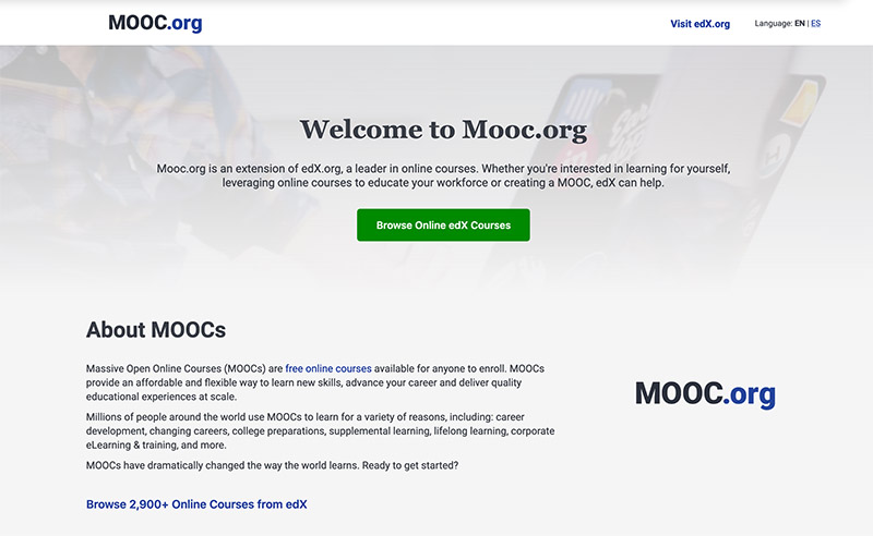 На другой стороне медали EDX.org находится Mooc.org. Массовые открытые онлайн-курсы – это термин, часто используемый для обозначения возможностей бесплатного онлайн-обучения, на которое может записаться любой желающий. Однако существует также компания Mooc.org, которая работает как расширение EdX. Это решение в основном обеспечивает несколько иной опыт обучения EdX, с гибкими инструментами для роста. Опять же, это не слишком большой выбор для создателей курсов, но вы можете использовать MOOC для получения таких вещей, как профессиональные сертификаты и онлайн-степени магистра, если хотите расширить свои навыки.