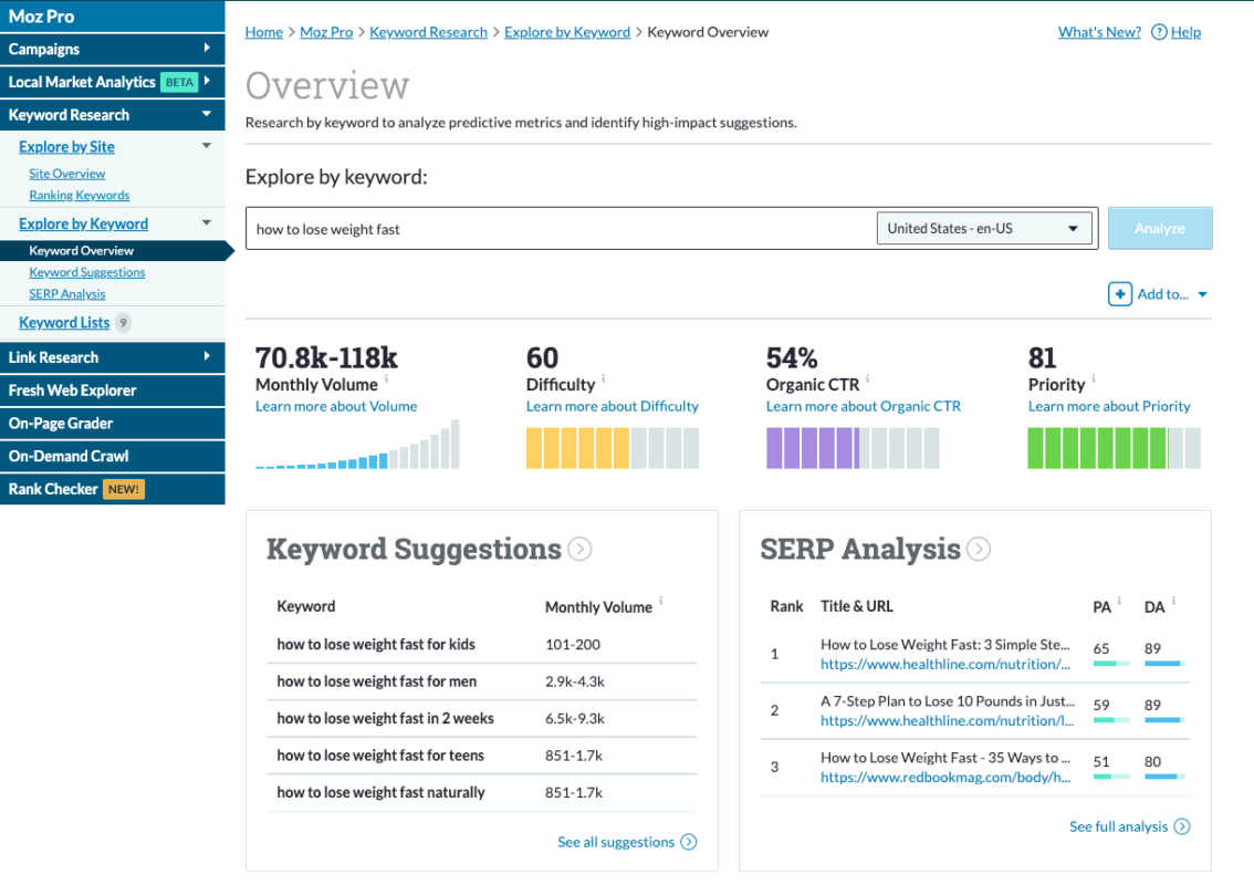 Moz Analytics: Хотите улучшить свой поисковый трафик, рейтинг и видимость ключевых слов? Инструмент Moz Analytics предназначен исключительно для вас. Он поможет вам провести аудит вашего сайта, отследить текущие рейтинги ключевых слов и посмотреть, что делают ваши конкуренты. Это идеальный инструмент для блоггеров всех уровней, которые хотят улучшить свою видимость в поиске.