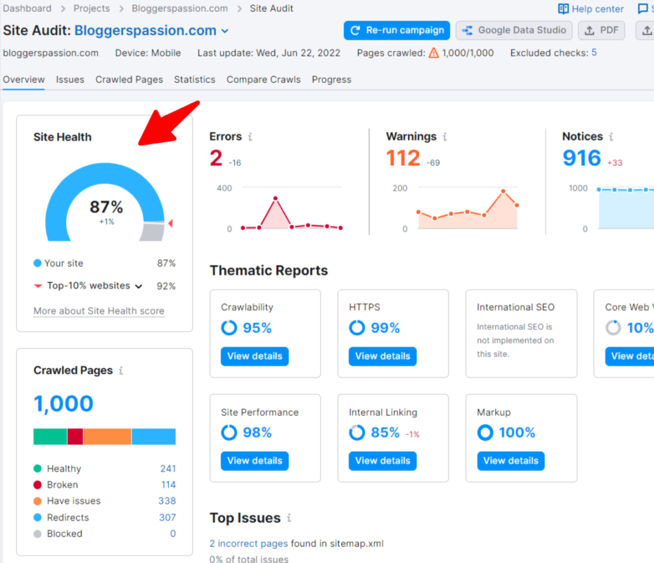 - Инструмент Site Audit поможет вам проверить состояние вашего сайта, найти все проблемы сайта и устранить их