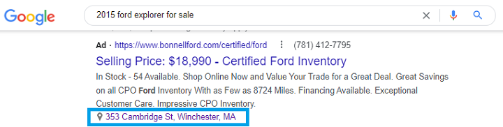 Если вы продаете товары крупного розничного продавца или дилера, вы можете использовать это расширение рекламы Google. В противном случае вам следует использовать обычное расширение местоположения.