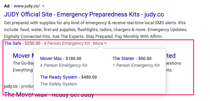 Хотя структурированные сниппеты можно настроить так, чтобы они подходили для большинства видов бизнеса, чаще всего они используются рекламодателями, желающими продвигать товары или услуги, благодаря шаблонизированным вариантам заголовков.