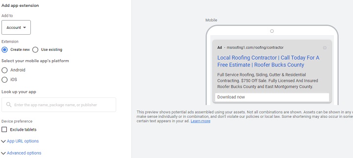 В отличие от некоторых других, более универсальных расширений Google Ad, расширения App должны использоваться только компаниями, у которых есть приложение.