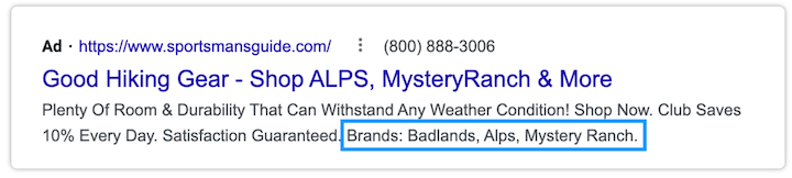 В SERP они не отличаются от текста описания. Этот тип расширения Google Ads – это просто способ добавить дополнительный текст, для которого в противном случае у вас, возможно, не было бы места. Он помогает вам “обратить внимание” на то, что вы, возможно, не упомянули ранее, например, “BBB A+ Rated” или “Family Owned & Operated”.