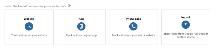 Google определяет пять основных типов действий по конверсии, из которых можно выбирать при настройке отслеживания конверсий в вашем аккаунте: