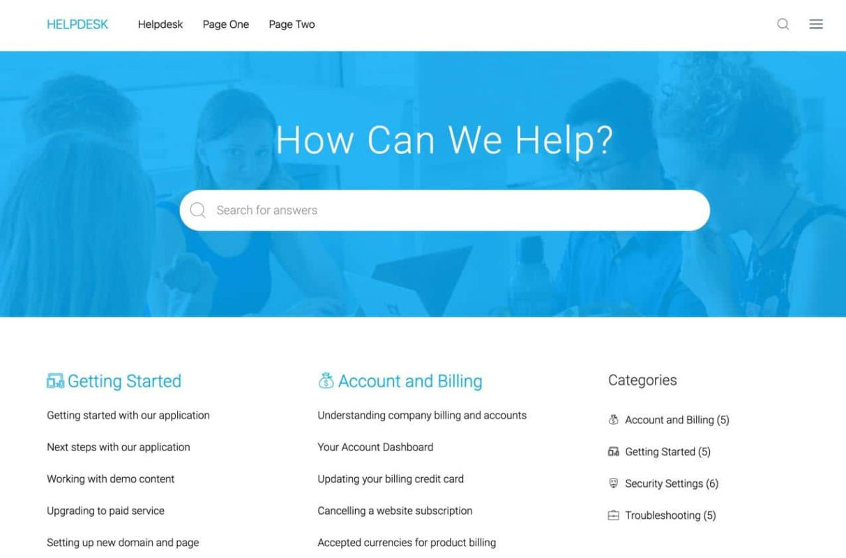 - Готовая входная/посадочная страница со строкой поиска и самыми популярными статьями, чтобы пользователи могли начать работу.