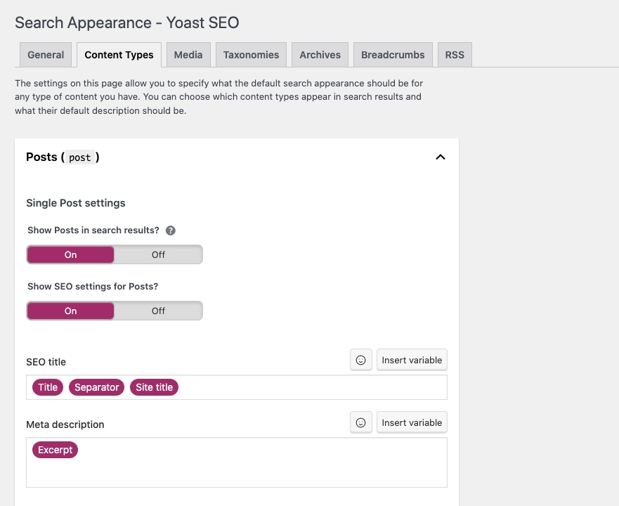 - SEO Title позволяет настроить ваш заголовок (в отличие от заголовка в самом контенте) так, чтобы он был более удобен для поисковых систем. Здесь вы можете создать оптимизированный заголовок для своего сообщения вручную или использовать переменные, что я бы и рекомендовал. Например, вы можете включить “Title”, который является заголовком, созданным для вашего поста, “Separator”, который можно определить в настройках плагина Yoast для Search Appearance, и “Site Title”, который является официальным названием вашего сайта, чтобы создать информативный и SEO-дружественный заголовок.
