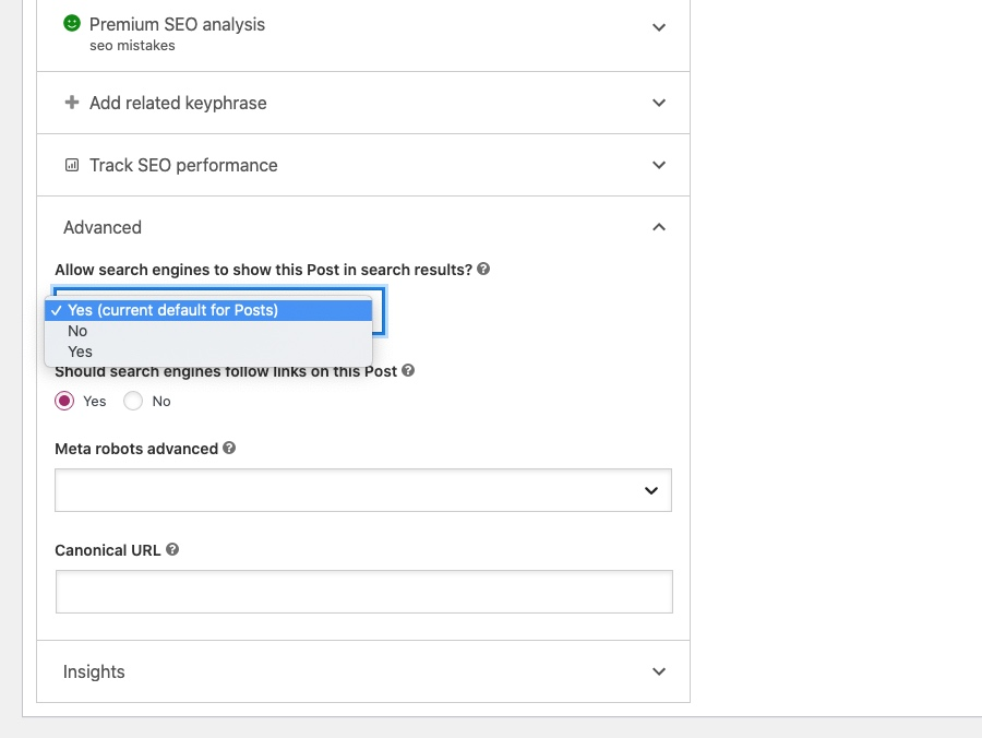 Вы поняли идею. Чем “чище” сайт, который вы можете представить Google, тем лучше. Все, что неактуально или бесполезно для поисковых систем, только снижает релевантность вашего сайта. Поэтому вы должны убедиться, что все такие страницы настроены на “noindex” – то есть попросить поисковые системы не индексировать их. Это легко сделать с помощью такого плагина, как Yoast SEO, который позволяет не индексировать целые таксономии/архивы. Установив плагин, просто перейдите в раздел SEO > Внешний вид поиска. Затем переключите опцию “Показывать (тип поста) в результатах поиска?” на Нет для каждого типа поста, который вы хотите не индексировать. Затем перейдите на вкладки “Таксономии” и “Архивы”, чтобы сделать то же самое.