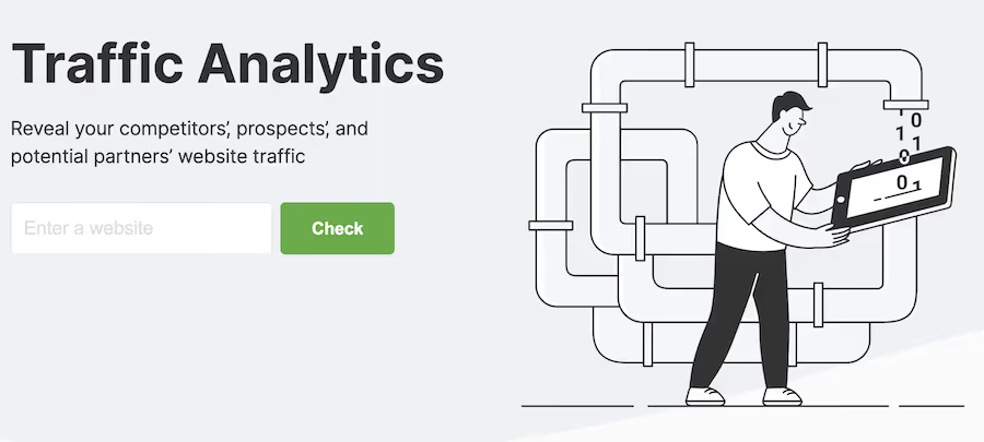 Traffic Analytics – часть решения Semrush.Trends – является основным инструментом для сбора различных сведений о конкурентах: от изучения их стратегий генерации трафика и понимания аудитории до выявления оценок количества трафика конкурентов и статистики поведения пользователей. Все данные в этом инструменте основаны на петабайтах данных о потоке кликов, собранных из многочисленных сторонних и собственных источников. Эти анонимизированные данные накапливают информацию о поведении более 200 миллионов пользователей и далее проходят через пользовательские алгоритмы искусственного интеллекта и машинного обучения Semrush.