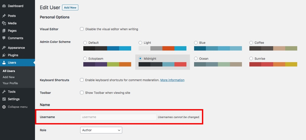 По умолчанию WordPress будет использовать имя пользователя автора в качестве slug. Это основная функция, встроенная в WordPress. Поэтому в нашем примере с именем пользователя “username” ссылка на автора будет выглядеть следующим образом: