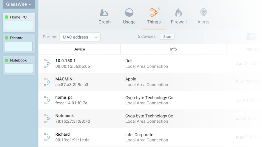 GlassWire доступен для Windows и Android. Это не только брандмауэр, но и другие функции, такие как визуализация использования сети, мониторинг использования полосы пропускания, блокировка мобильных устройств, просмотр и одобрение каждого соединения, просмотр того, кто подключен к вашей сети Wi-Fi, профилирование и многое другое.