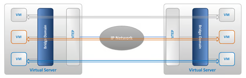 Представьте, что у вас есть большой центр обработки данных с множеством физических серверов и виртуальных машин (ВМ), работающих на этих серверах. В традиционной сети на основе VLAN каждая ВМ будет назначена на определенную VLAN. А для связи между виртуальными машинами в разных VLAN потребуется маршрутизация на уровне 3. Такой подход может стать сложным и может страдать от проблем масштабируемости из-за ограниченного количества доступных идентификаторов VLAN.