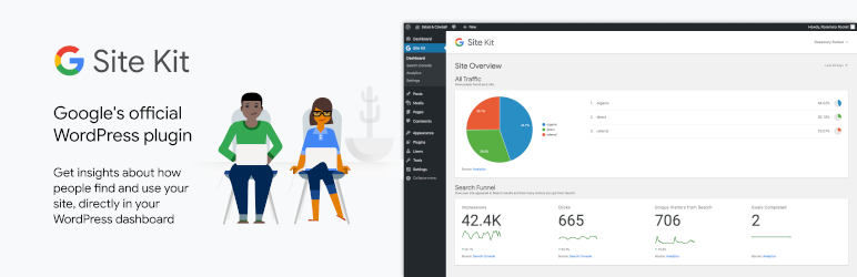Если вы используете Google Analytics, почему бы не попробовать официальный плагин Google Site Kit? Этот бесплатный плагин позволяет интегрировать и просматривать все ваши аналитические данные с приборной панели WordPress. Это не только облегчает подключение аналитики, но и упрощает процесс отслеживания в будущем. У нас есть полное руководство по Google Site Kit, чтобы провести вас через процесс настройки или если вы просто хотите увидеть больше возможностей Site Kit.