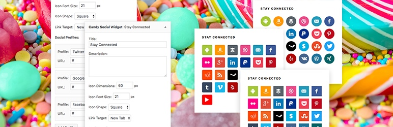Покажите свои социальные профили на виджетах боковой панели вашей темы с помощью Social Candy. Этот простой плагин добавляет множество социальных ссылок и вариантов оформления, чтобы посетители вашего сайта могли легко найти вас в Twitter, Facebook, Pinterest, LinkedIn, YouTube и других.