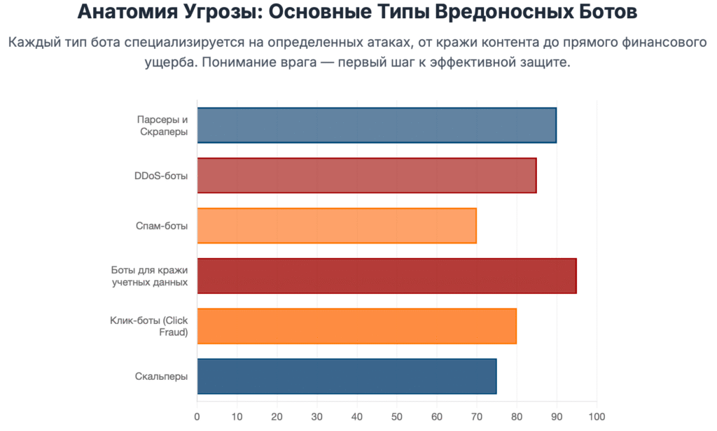 Классификация вредоносных ботов: от простых парсеров до изощренных мошенников